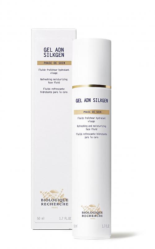 Gel ADN Silkgen je svěží hydratační fluid obohacený o aktivní antioxidační složky. Vyrobený z rostlinné DNA a extraktu z hedvábí. Zachovává hladinu hydratace epidermis. Pleť je zanechána hedvábně hladká, rehydratovaná a zářivá vitalitou. Nezanechává žádný film na povrchu pleti, protože neobsahuje lipidy.