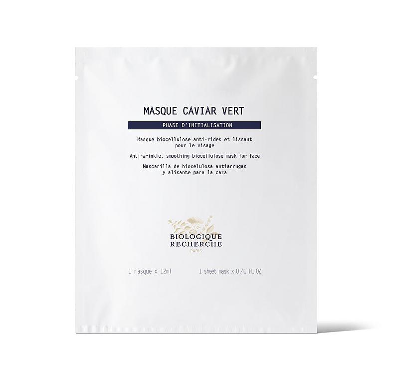 Masque Caviar Vert, okamžitý účinek proti známkám stárnutí pokožky, má zpevňující účinek, který vyplňuje vrásky a jemné linky obličeje. Její složení je založeno na zeleném kaviáru (mořská řasa) a kolagenu, které společně pomáhají tonizovat epidermis a tím zlepšují vzhled struktury pleti. Vrásky jsou viditelně vyhlazeny a rysy obličeje zpevněny. Biocelulózová tkanina je v dokonalé součinnosti s epidermis a vytváří efekt „druhé kůže“. Má i zklidňující a mírně protizánětlivý účinek.
